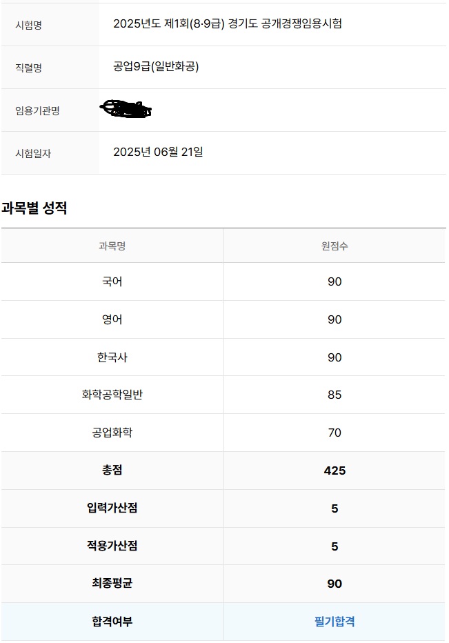 안녕하세요. 9급 화공직 종합반 후기 / 합격후기 입니다. 2025년 6월 지방직 대비 수강하였고, 감사하게도 강의 덕분에 합격하였습니다. 1. 베이스 화학공학과 졸업 / 화공기사 有 2. 준비 기간 & 공부 방법 -준비 기간: 4개월 (2025. 2월말부터) 준비기간이 짧은데, 저는 몇년 전이긴 하지만 공무원을 한 적이 있어, 국어, 한국사, 영어에 대한 기억이 약간 남은 상태였습니다. -공부 방법 문과 과목인 국어, 영어는 비교적 좋아하고 자신 있는 과목이라서 공부 비중을 10%씩 설정하였고 한국사 30%, 화학공학일반 25%, 공업화학 25% 정도로 대략 설정하였습니다. 3. 수강방법 & 수강평 처음에 강의를 수강하기 전에 기출문제집을 사서 해설을 보며 공부했었는데, 혼자 공부하다보니까 뭐가 중요하고 중요하지 않은지 파악이 어려웠고, 해설이 간략하게 나오는 경우가 많아서 해설을 봐도 이해가 되지 않고 공부 시간이 오래걸렸습니다.. 3주 정도 그렇게 공부하다가, 이렇게 공부하면 안될 것 같아 켐탑 기출 강의 위주로 공부를 시작했습니다. 이홍주 교수님 기출 강의를 들으면서 혼자 공부할 때 보다 진도가 훨씬 빨라졌고, 아무래도 강의를 듣다 보니 내용이 기억에 오래 남았던 것 같습니다. 특히 저처럼 단기간에 많은 양을 숙지해야 할 때는 기출 강의는 좋은 선택지라고 생각합니다. 감각을 많이 사용하는 공부방법이 효과적이라고 생각하는데, 아무래도 시각만으로 공부하는 것보다 시각, 청각 모두 사용해서 공부하게 되니 더 효과적인 학습방법이었던 것 같습니다. 수험 기간이 쉽지 않은데, 모두 꿈을 이루시길 기도하겠습니다 !